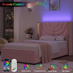 Twin Size Upholstered LED Bed Frame with Storage Drawer, Velvet Kids Bed with Wingback Headboard, Princess Twin Platform Bed for Girls/Kids, Solid Woo$160Fontana, CA