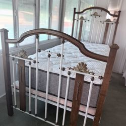 Beautiful Antique French Carved Wood Full Size Bed With Cream Colored Upholstery $485Corona, CA