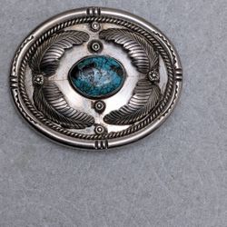 Silver Belt Buckle With Turquoise Navajo Signed By Artist EB $325Fallbrook, CA