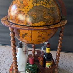 Vintage Italian wood Globe Wine Bar Stand, Rack Liquor Bottle Shelf