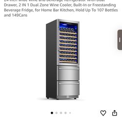 24 Inch Wide Wine and Beverage Refrigerator With Dual Drawer, 2 IN 1 Dual Zone Wine Cooler, Built-In or Freestanding Beverage Fridge, for Home Bar Kit$780Fontana, CA