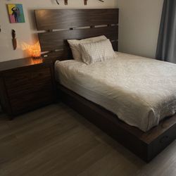Wooden Queen Bed Frame + Nightstand$300Beaumont, CA