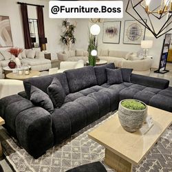 NEW LARGE U Shape Sectional Sofa Chenille Fabric Black Dark Grey Modern with Chaise and Ottoman Set Couch Big SALE Discount Furniture Warehouse Ashley$799Highland, CA