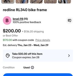 Redline 340 Bmx Frame $185San Bernardino, CA