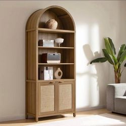 Set Of 2, Arch 84.2" Tall Bookcase 5 Tier Large Bookshelves with Doors Storage Rattan Boho Wide Book Shelves Case for Living Room Kitchen Office Bedro$320Temecula, CA