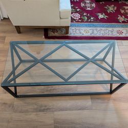 Glass Coffee Table, Geometric Black Metal Frame Indoor Or Outdoor$100Corona, CA