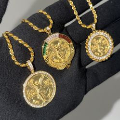 18K Gold Centenario Chain Aztec Bezel Eagle 925 Silver Base Rope Chain 18K Gold Plated$370Fontana, CA