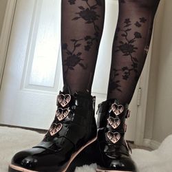 Black & pink heart-shaped platform boots with dr. scholls sole$35Corona, CA