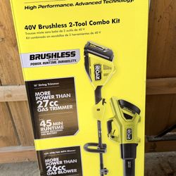 Ryobi 40V Brushless 2-Tool Combo Kit Weed Eater And Leaf Blower $225Hemet, CA