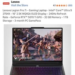 Lenovo Legion Pro 7i Gamin Laptop$1,350Hemet, CA