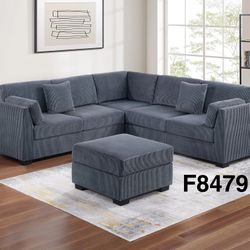 Sectional Sofa With Ottoman Available In Black, Grey Or Beige Corduroy Fabric$550Beaumont, CA