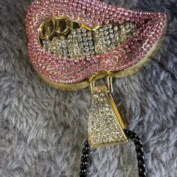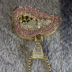 Mens new without tags Gold blinged out teeth and lips pendant with a gold 24 inch box chain. $29Riverside, CA