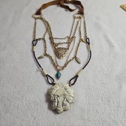 Necklace four strand jadeite lions head pendant leather strap signed KC 20"long$40Corona, CA