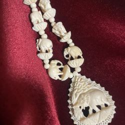 Vintage 1950s Faux Ivory Celluloid Carved Elephant Pendant Necklace - Women’s Animal Jewelry $20San Jacinto, CA