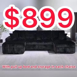 Brand New Super Comfy Plush Corduroy Sectional W Pullout Bed $899San Bernardino, CA