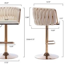 658 Modern Adjustable Leather Bar Stool Set of 2 with High Back and Gold Base, Cream White - 2 Pieces $100Grand Terrace, CA