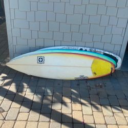 Surfboard- 5’11 thumbtail (twin + 1/thruster)$75CA, US