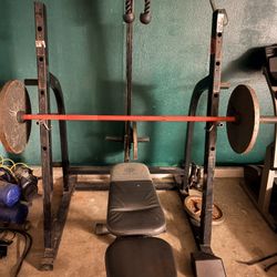 Weights Table Bench Barbell Cage $425Riverside, CA