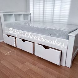 White Twin Bed With Storage And Memory Foam Mattress $599Corona, CA