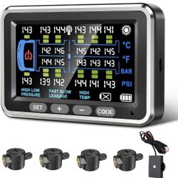 RV Tire Pressure Monitoring System,4.5" Color TPMS Sensors Set of 4 with Flow Thru Sensors,0-199PSI,No Removal Inflation,6 Alerts Monitor for Car/Truc$99Turlock, CA