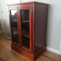 Cabinet for sale walnuts stain in very good condition glass doors total of 4 shelves$275Turlock, CA