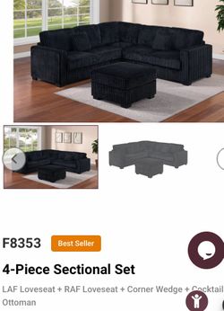 Sala de 4 piesasen color negro. 4-Pc Black Sectional$785Los Banos, CA