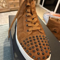 Christian Louboutin Lou Spikes high-top sneakers in brown suede with gunmetal spikes. $250Merced, CA