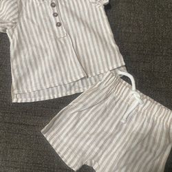 Boys Khaki Striped Shirt And Shorts Set Size Newborn By Carters #7$3Atwater, CA