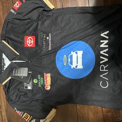 Marwin Sports sublimated zipper polo shirt featuring NASCAR Legacy Motor Club and Carvana branding. $25Merced, CA