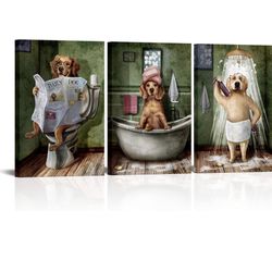 Artsbay Dog Wall Art Golden Retriever on Toliet Bathtub Take a Shower Relaxed &$30Chowchilla, CA