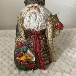 6" CHRISTMAS OLD WORLD SANTA W/BLUE CLOAK TOY BAG & BELL CERAMIC POTTERY FIGURE #3$5Atwater, CA