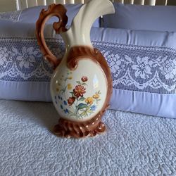 Vintage Alberta’s Large Ceramic Ewer Pitcher White with Mauve Trim EUC $15Delhi, CA