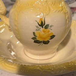 Arnels Vintage Wash Bowl And Basin Ivory White & Yellow Roses / Trim$15Waterford, CA