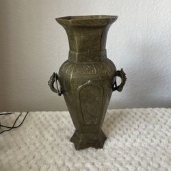 Chinese Antique Vintage Brass Double Ring Archaistic Vase Floral Motif#26$45Atwater, CA