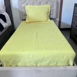 Twin XL Size Bed On A Metal Frame With Very Nice Cloth Covered Headboard. New 12 Inch Thick Memory Foam Matress. Hablo Español Y Hago Entrego$375Atwater, CA