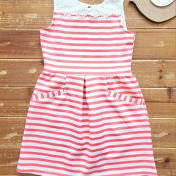 SIZE 7-8 GIRLS SLEEVELESS CORAL STRIPES HALF LACE NECKLINE POCKETED STRETCHY KNIT DRESS$5Merced, CA