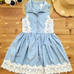SIZE 7-8 GIRLS SLEEVELESS LIGHT BLUE CHAMBRAY W/ WHITE CROCHET FLORAL LACE DRESS $5Merced, CA