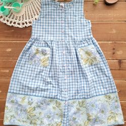 SIZE 5T-6 GIRLS VINTAGE SLEEVELESS BLUE & WHITE PLAID FLORAL BUTTON DOWN COTTON DRESS$7Merced, CA