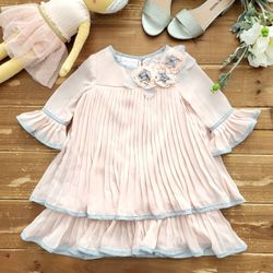 2T SPECIAL OCCASION PALE PINK & GRAY THREE QUARTER FLOUNCE SLEEVES PLEATED LAYER DRESS $5Merced, CA