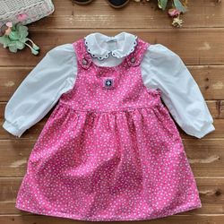 4T 2-PIECE OUTFIT VINTAGE WHITE BUTTON FRONT 3/4 SLEEVES PETER PAN COLLAR PUFF SLEEVES BLOUSEW/VINTAGE COVERALL FUSCHIA PRINT CHAMBRAY DRESS$6Merced, CA