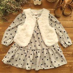 2T 2-PIECE SET TAN & GRAY PLAID STAR LONG-SLEEVE DRESS W/FAUX FUR VEST **BRAND NEW W/OUT TAGS**$6Merced, CA