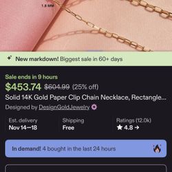 Solid 14k Gold Paperclip Chain 18inches 1.8mm$300Turlock, CA