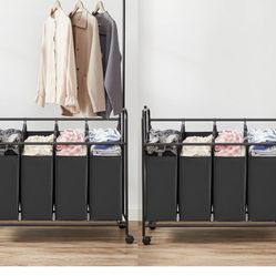 SONGMICS 4-Section Laundry Sorter, Rolling Laundry Cart with Hanging Bar, Laundry Organizer, Hampers for Laundry, Heavy-Duty, Lockable Wheels, 4 x 13.$45Chowchilla, CA