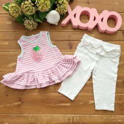 6-9MOS 2-PIECE OUTFIT SLEEVELESS PINK & WHITE STRIPE STRAWBERRY RUFFLE TANK W/WHITE RUFFLE BOTTOM LOUNGE PANTS$3Merced, CA