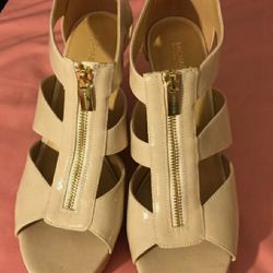 Womens Michael Kors MK Damita Leather Platform Wedge Sandals - Beige, Size 10$60Atwater, CA