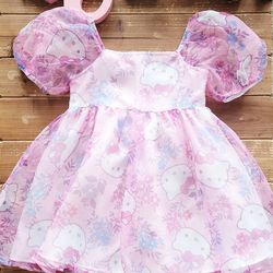 SIZE 14 GIRLS SANRIO HELLO KITTY PINK PUFF SLEEVES BABYDOLL ORGANZA DRESS$10Merced, CA