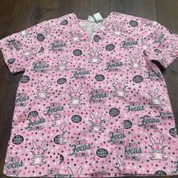 Womans Pink Black It’s Happy Bunny Medical Scrub Shirt Sz XL #15$3Atwater, CA