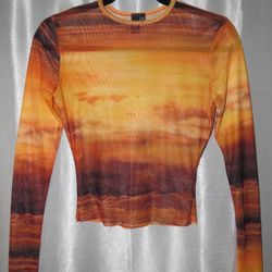 Mesh Orange Sunset Long Sleeve Shirt $7Hughson, CA