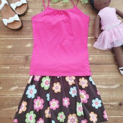 SIZE 10-12 GIRLS 2-PIECE OUTFIT FUSCHIA TANK W/BROWN MULTICOLOR FLORAL SKIRT BUILT-IN BIKER SHORTS$5Merced, CA