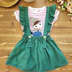 5T 2-PIECE OUTFIT STRIPED CUTE GIRL TEE W/FOREST GREEN RUFFLE STRAPS OVERALL SKIRT$6Merced, CA